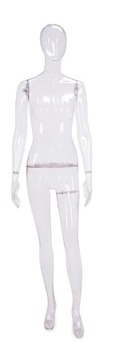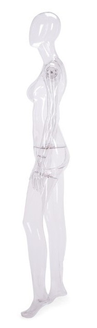 Omschrijving: Vrouwelijke transparante mannequin met Egg hoofd